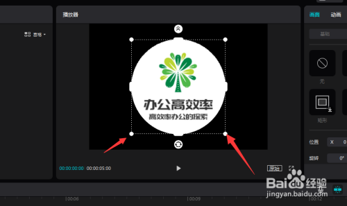 选中相应的Logo图片,在右侧“属性”界面中,选择“蒙版”列表中的“圆形”蒙版。