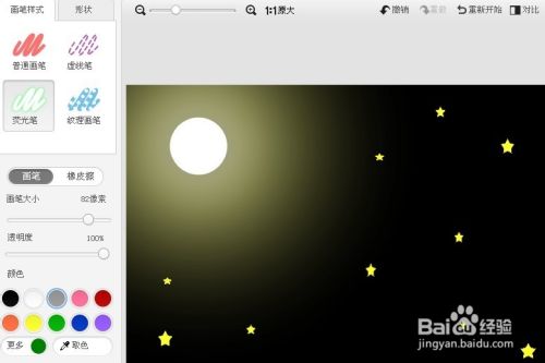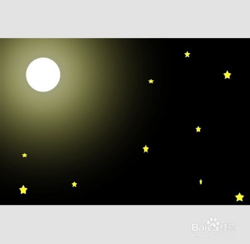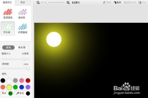画笔颜色黄色,大小82像素,直接画出一个圆,即是月亮。如图示: