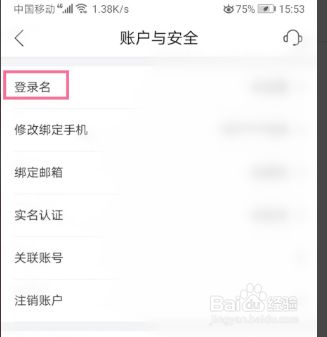 进入账户与安全的页面点击【登录名】选项