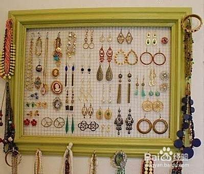 收纳盒摆放包包 收纳项链 这种铁丝网用来收纳耳环真是太合适不过了 小展板