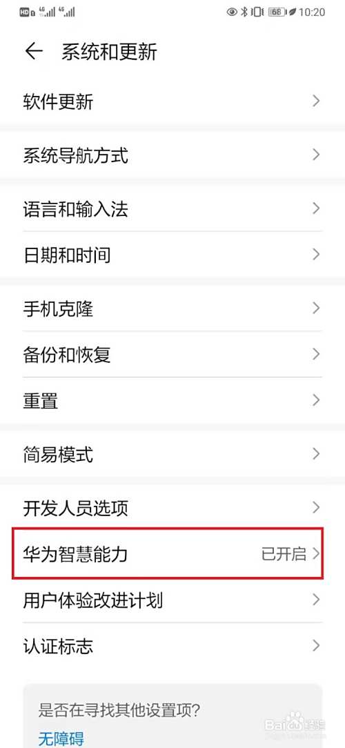 进入系统和更新页面,打开【华为智慧能力】服务选项,如下图所示。