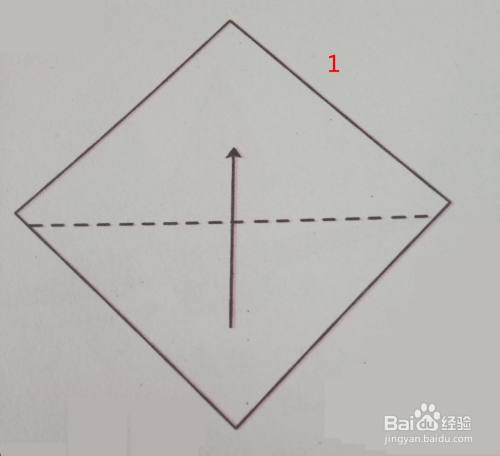 第一步:准备正方形彩色卡纸,沿虚线折叠。如下图所示