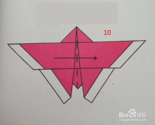 第十步:沿虚线朝箭头方向反折。如下图所示
