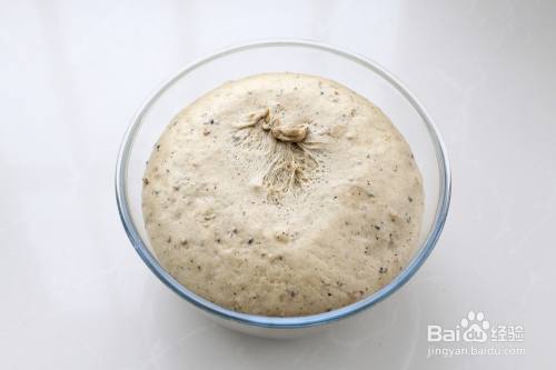 待面团发酵至原来的2.5倍大,扒开内部呈蜂窝状基本就发酵好了。