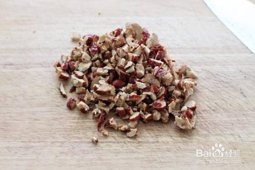 红枣洗净擦干表面水分,去掉枣核切成小丁状。