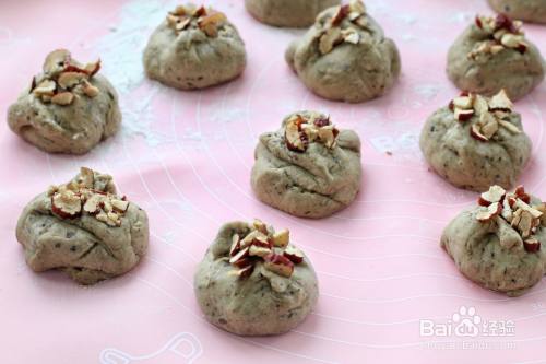 断面向上摆放,无需刻意整形,把剩余的红枣丁均匀的放到上面。