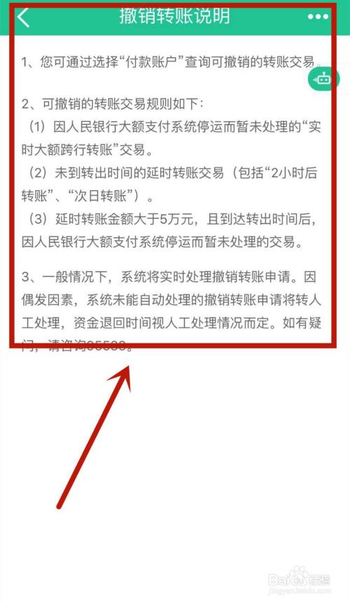 随后界面就会显示出撤销转账的规则说明。