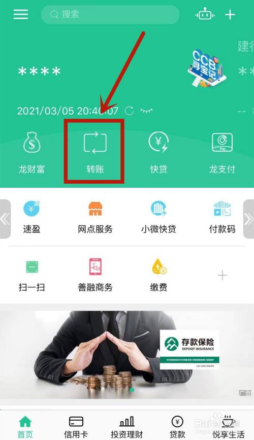 打开中国建设银行,点击首页中的转账选项。