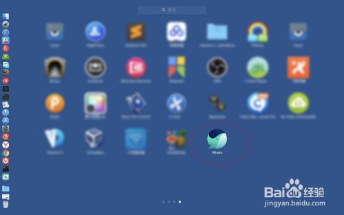 然后点击启动台图标,在启动台里面点击鲸鱼的图标。