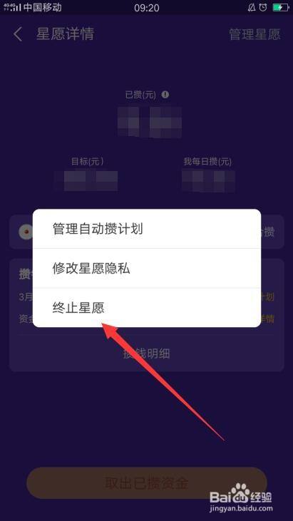 在星愿详情中点击【管理星愿】,在弹出的窗口中点击【终止星愿】。