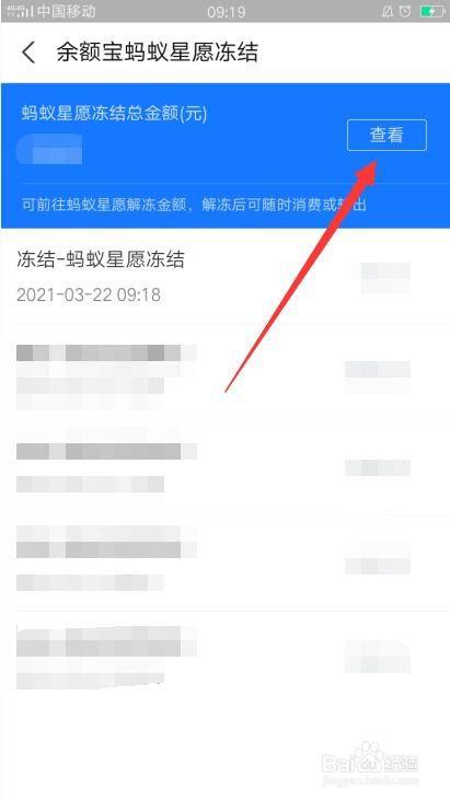 在冻结详情中看到是因为蚂蚁星愿导致,点击【查看】。