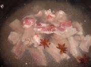 锅内放水烧开,倒进排骨焯至变色后捞起;