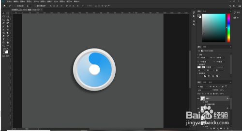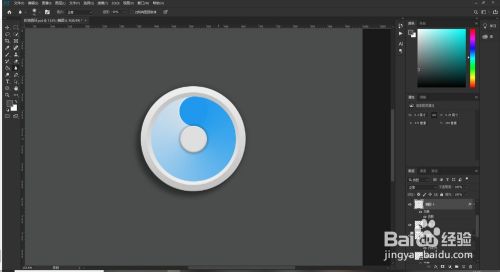 接下来给中间的小圆添加一个颜色叠加的效果,混合模式为正常,颜色填充为e0e0e0,最后调整各图形的位置就可以得到一个拟物风格的浏览器图标了