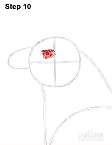 第10步:在头部轻轻勾画一个小圆圈,以供眼睛使用。使用构造线作为放置眼睛的指南。在小圆圈上方画一条水平线,用于沉重的额头。使小圆变暗以创建眼球的形状。