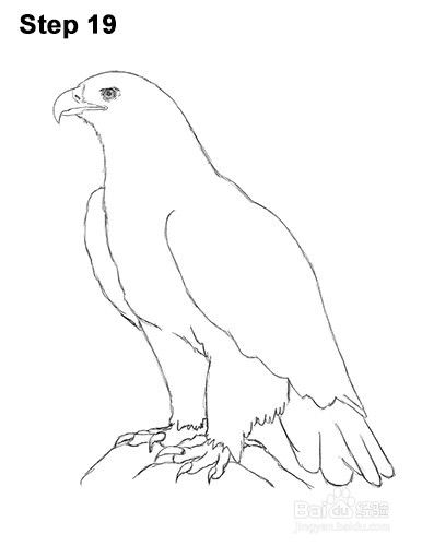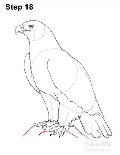 步骤18(可选):在脚下画几条短弯曲线,让金鹰站起来。