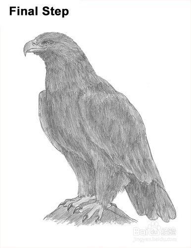 最终步骤(可选):在整个绘图中添加一些阴影以获取额外的细节。金鹰基本上是一个坚实的棕色和非常小的模式,所以只需在您的整个绘图中添加一个中等值。在遮阳时,使用沿羽毛大致方向的笔触。在头部使用水平方向的笔触,然后逐渐转动它们,使它们在身体上垂直。您也可以将头部和尾部留空,并将其变成秃头鹰!