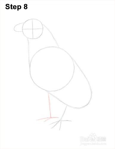 第八步:在左侧身体另一条线下画一条金鹰的另一条腿。在底部添加三条小线作为单个脚趾的指南。