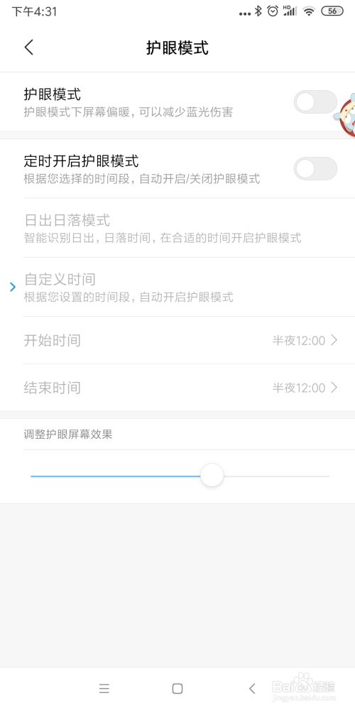 5,“护眼模式”右侧按钮“点亮”,说明“护眼模式”已开启,有利于减少蓝光对眼睛的损害