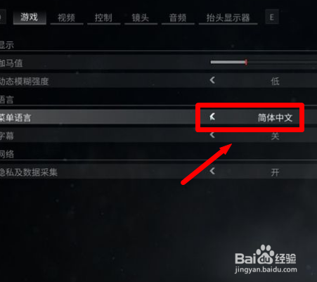 点击Language下的Menu Language左右切换成中文。