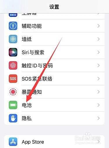 在设置里点击电池。