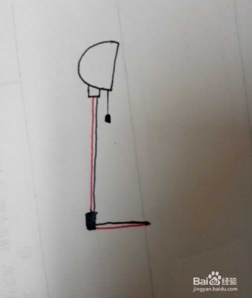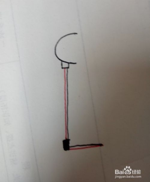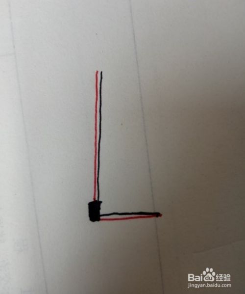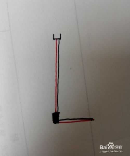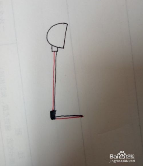 如图在纸上写出英文大写字母L,然后,在字母的基础上描粗,这是台灯的底座和灯杆部分。