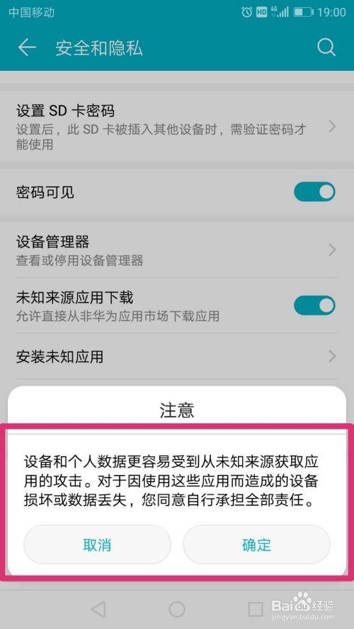 点击打开未知来源下载和外部来源检查,出现提示,如图,点击确认,