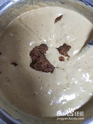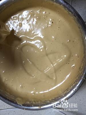 翻拌均匀后,在倒回面糊中,翻拌均匀。