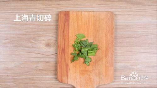 上海青用刀切碎。大米下锅加水煮成粥。