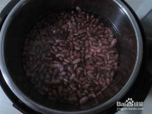 提前泡了一天的花芸豆,放到高压锅,煮豆键