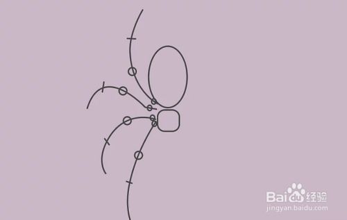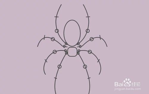 在蜘蛛的身体画出4条延伸的曲线。在蜘蛛的腿上画上小圈和细线作为下一步的参考,来画出蜘蛛腿的细节。