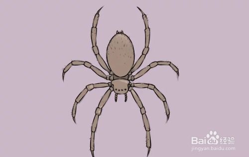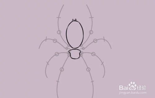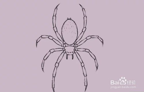 画出蜘蛛身体和头的细节。在蜘蛛的后部画出蜘蛛的丝囊