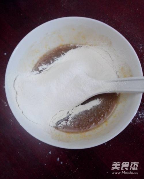 倒入过筛的低粉,搅拌均匀