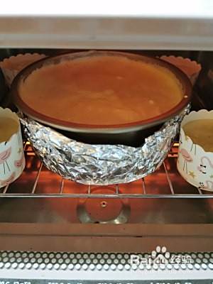 烤箱150度预热十分钟,烤40分钟。我的烤箱小,我怕蛋糕烤制过程中发起来太高,挖出来一点蛋糕液又放了四个纸杯一起烤。