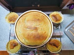 出炉,成功!!烤好的香蕉蛋糕好香好香!整个房间散发着热乎乎的香蕉味,趁热吃,又软又好吃!棒!我很满意!?