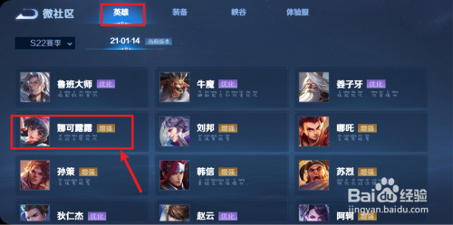 然后点击英雄往下翻,就可以看到娜可露露旁边有增强两个字,点击娜可露露