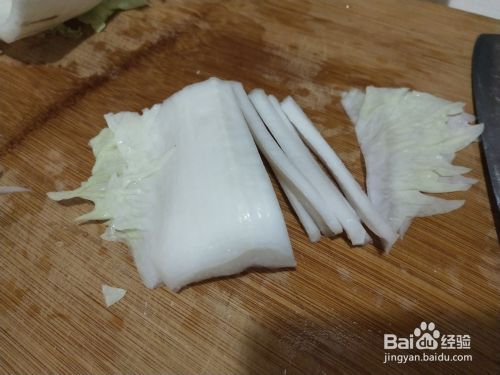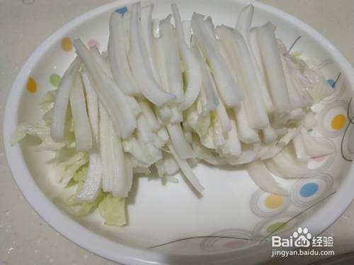3切好备用,洗过的白菜帮一定要控干净水份。或者只洗外面的,里面的不用洗,这个随自己可以再切的细一点更好吃,我是因为宝宝乱腾有点赶时间
