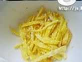 准备蛋皮切丝(我是用一个鸡蛋的蛋黄做的)