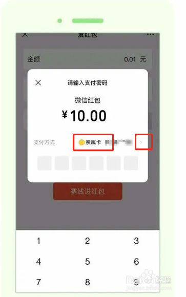 2、然后在支付时,点击小箭头选择亲属卡支付即可。