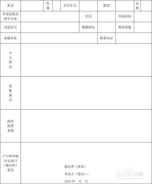 1首先我们需要认真去观看政审表中主要关系人需要所填项目,一般是“与本人的关系”、“姓名”、"政治面貌"、"工作单位及职务",这五项内容。