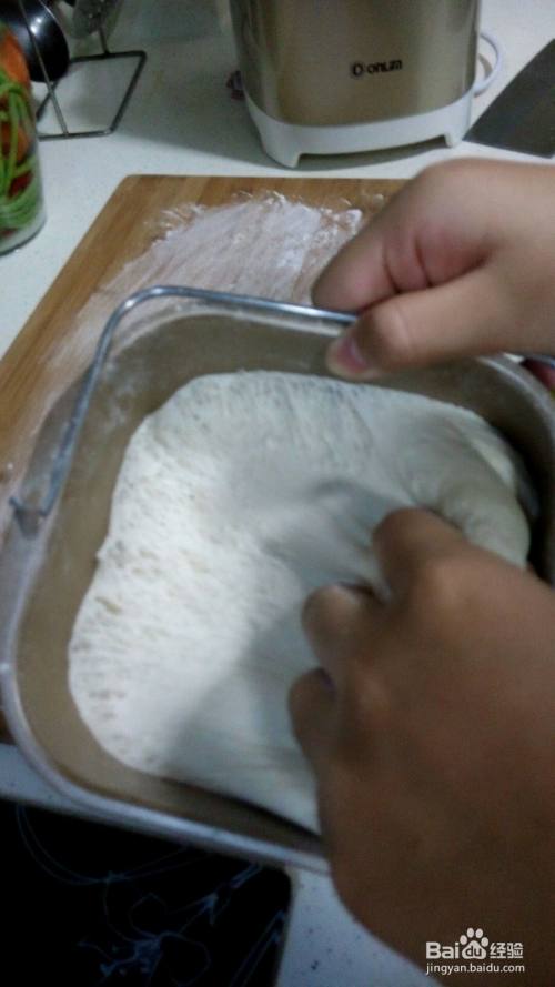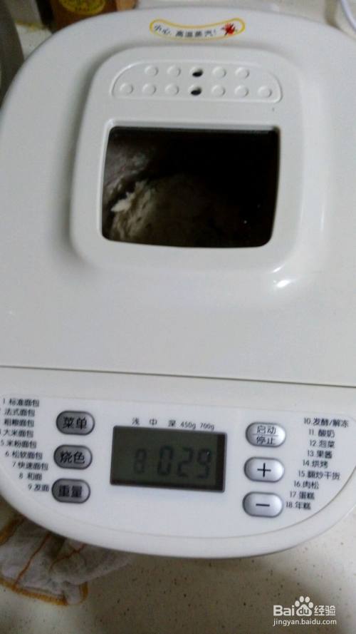 依次将水,面粉,酵母放入面包桶,使用和面功能,开始搅