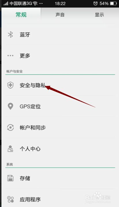在:账户与安全选项中,找到:安全与隐私,点击进入。