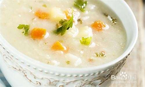 早、中、晚三顿辅食,以粥、烂饭、软面为主,适量增加鸡蛋羹、肉末、蔬菜之类。