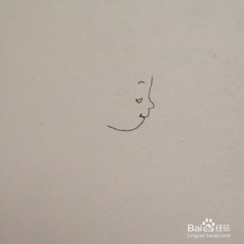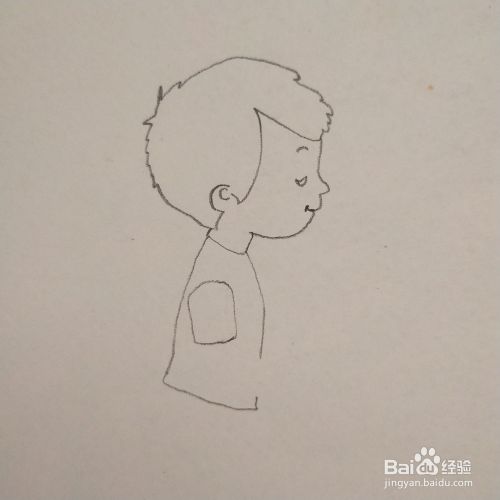 如图,首先画出男孩的面部:眼睛、鼻子、嘴巴、眉毛。因为我画的是侧面,所以只画出了半边脸哦。