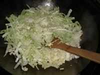 锅里放油,包菜切丝放入翻炒
