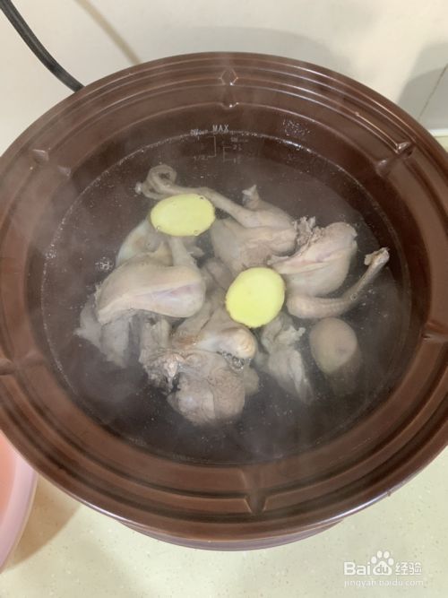 冷水下骨头与鸽子姜片,煲1个钟左右。