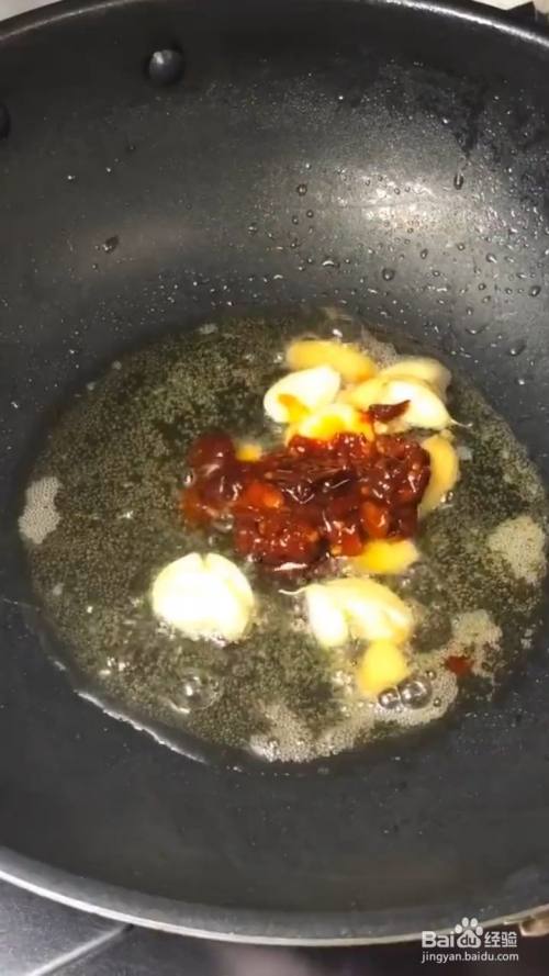 另起锅炒香姜蒜 下入豆瓣酱炒出红油;