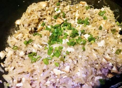 9最后加入葱花,如果有新鲜的大蒜叶加入会更好
