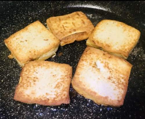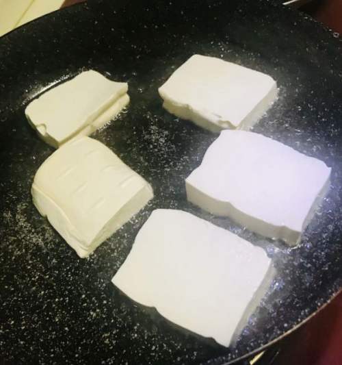 2腌萝卜丝的同时开始煎豆腐,买菜场里用刀切的那种豆腐,不要买盒子豆腐