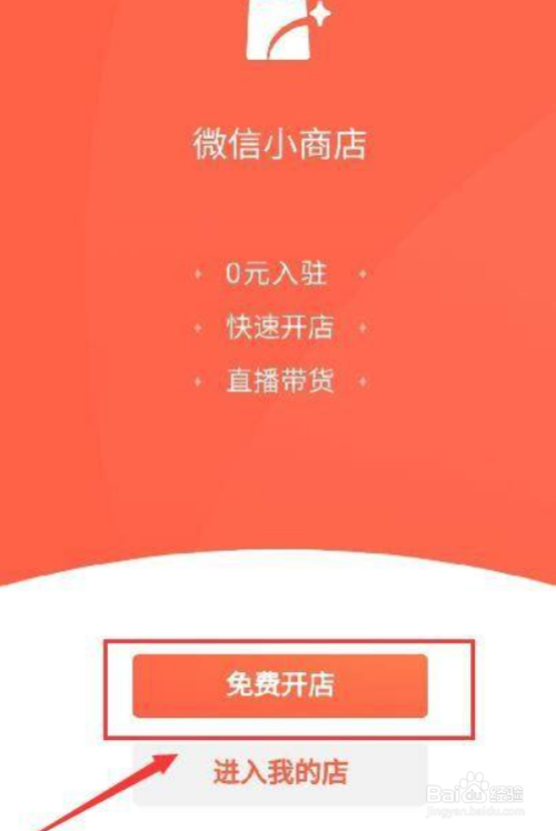 点击下方的“免费开店”图标,点击进入“我的小商店”
