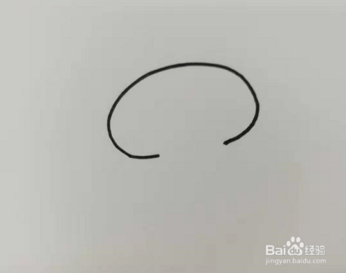 首先,在准备好的纸上,我们先画上一个略微倾斜的椭圆,椭圆注意留一点空白,不要全部封上,具体如下图所示。